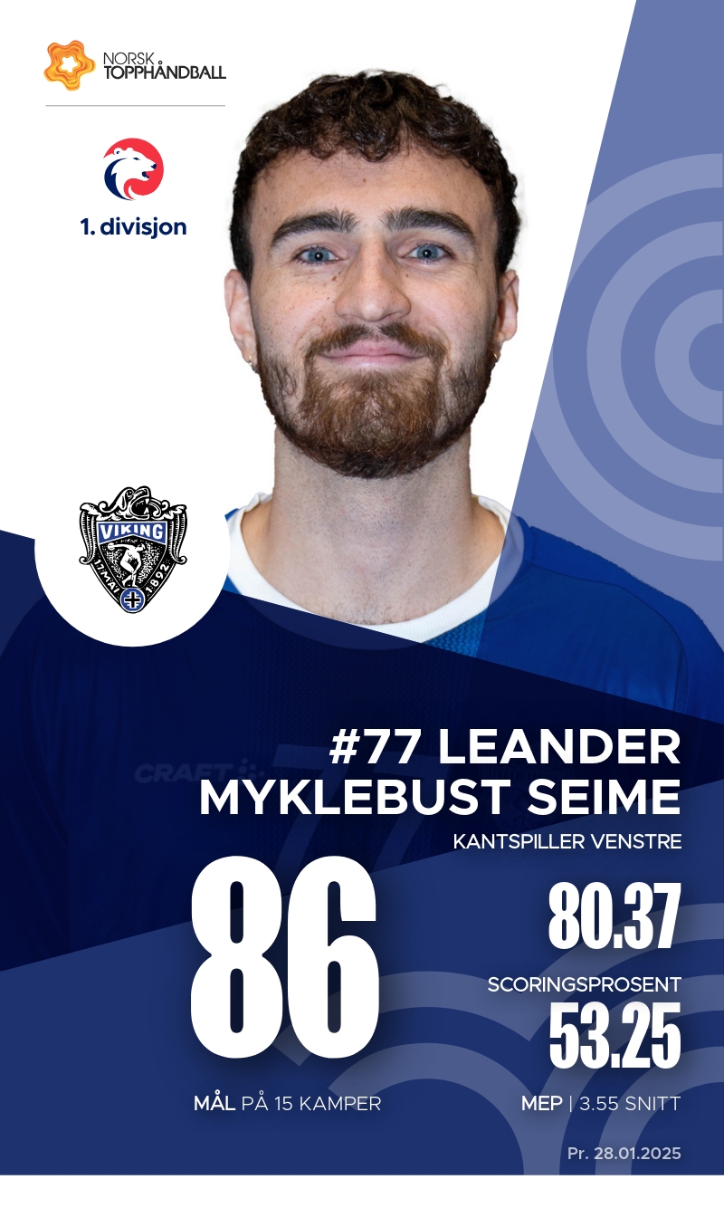 Viking TIF har noen fremragende spillere som virkelig har utmerket seg i denne sesongen. Leander Myklebust Seime er en av dem med imponerende 86 mål på 107 skudd, noe som gir ham en høy effektivitet. Med 11 assists viser han også at han kan bidra til lagspill. En annen spiller å merke seg er Marcus Renée Næss Soltvedt , som har gjort 35 mål og 11 assists, samt en høy MEPS på 4.8, noe som indikerer hans betydning for laget. Bjørn Christensen Mathiassen har også vært en nøkkelspiller med 44 mål og hele 45 assists, noe som gjør ham til en viktig playmaker. Disse spillerne bidrar sterkt til Viking TIFs suksess i 1. divisjon.